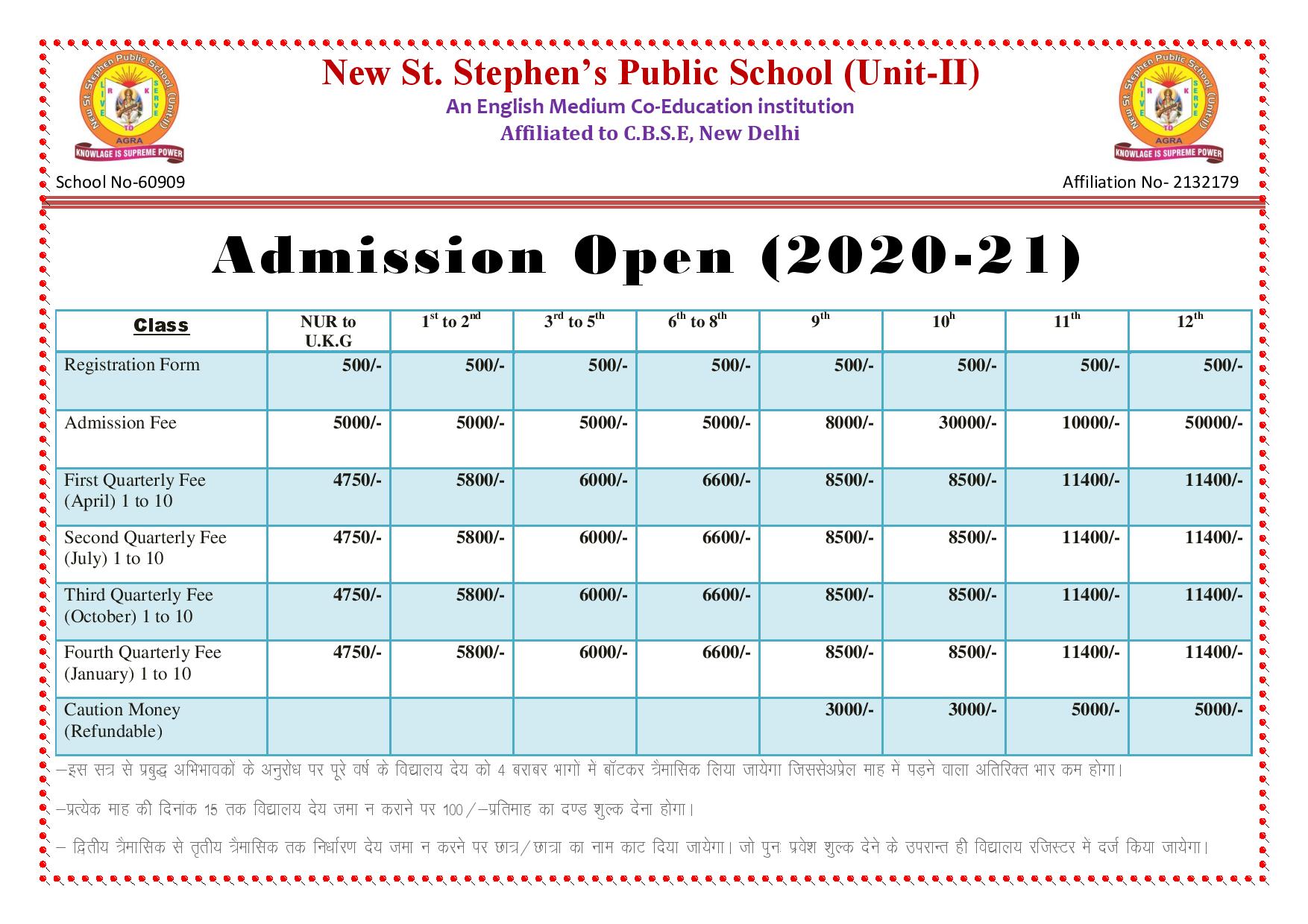 FEE STRUCTURE OF (2020 - 2021)